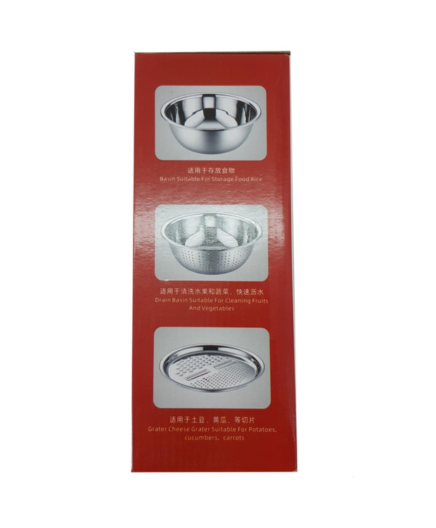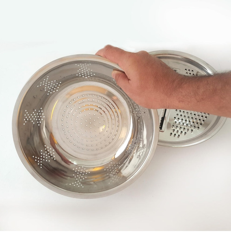 سایز لگن و کاسه ۲۶x۲۶ سانتی متر ارتفاع ۸ سانتی متر سایز رنده ۲۶x۲۶ ارتفاع ۳ سانتی متر قابلیت استفاده از لگن و یا کاسه به عنوان ظرف زیر رنده