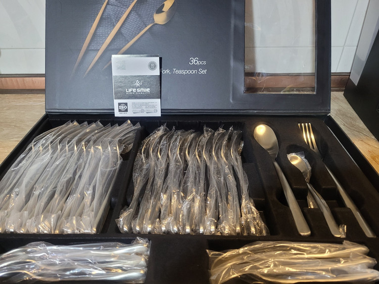 این سرویس شامل 12 عدد قاشق چای خوری و 12 عدد قاشق غذاخوری و 12 عدد چنگال غذاخوری می باشد.این سرویس از جنس استیل ضد زنگ و با کیفیت بسیار بالایی میباشد و شرکت لایف اسمایل در طراحی این سرویس چیزی کم نگذاشته است.