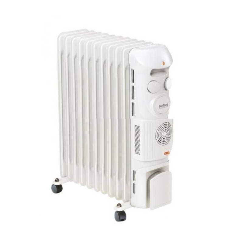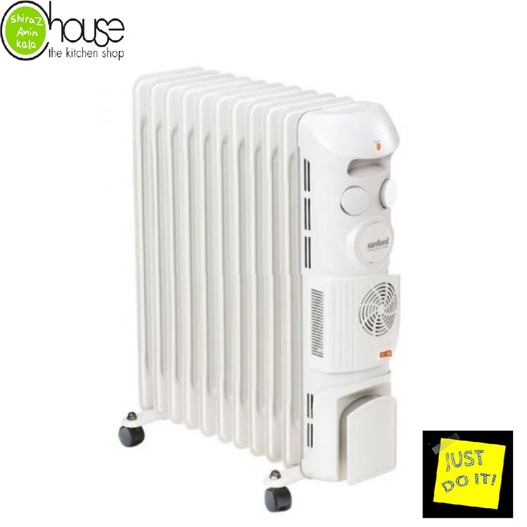 شرکت سانفورد یکی از بزرگترین شرکت های تولید لوازم خانگی در آسیا وخاورمیانه تحت لیسانس ژاپن می باشد،که در تولید تجهیزات گرمایش خانگی پیشتازممتازاست. شوفاژبرقی سانفورد مدل SF1210OH یکی از باکیفیت ترین و بادوام ترین محصولات این شرکت می باشد که دارای 9 پره فلزی و توان گرمایش 2400 وات که دارای قابلیت تنظیم دما و کنترل ترموستات می باشد.شوفاژ های برقی بااستفاده از گرمایش روغن داخلی دستگاه وچرخش آن در پره ها داغ شده و بدون صدا با راندمان و مصرف انرژی بهینه گرمایش ایجاد می کند.این وسیله دارای 4 چرخ و دستگیره می باشد که امکان جابجایی را براحتی به هر جهت می دهد. از امکامات دیگر این دستگاه می توان به فن کوچک که در جلوی دستگاه تعبیه شده اشاره کرد که دارای کلید مجزاخاموش/روشن می باشد و باعث پرتاب حرارت به اطراف می شود. همچنین این دستگاه دارای میکروسویچ ایمنی می باشد که هنگام کج شدن یا افتادن،دستگاه اتوماتیک خاموش شده و از خطرات احتمالی جلوگیری می نماید. نقطه عطف قابل ملاحظه دیگر این دستگاه می توان به طراحی بسیار زیبا و بروز و متفاوت با سایر دستگاه ها اشاره کرد.