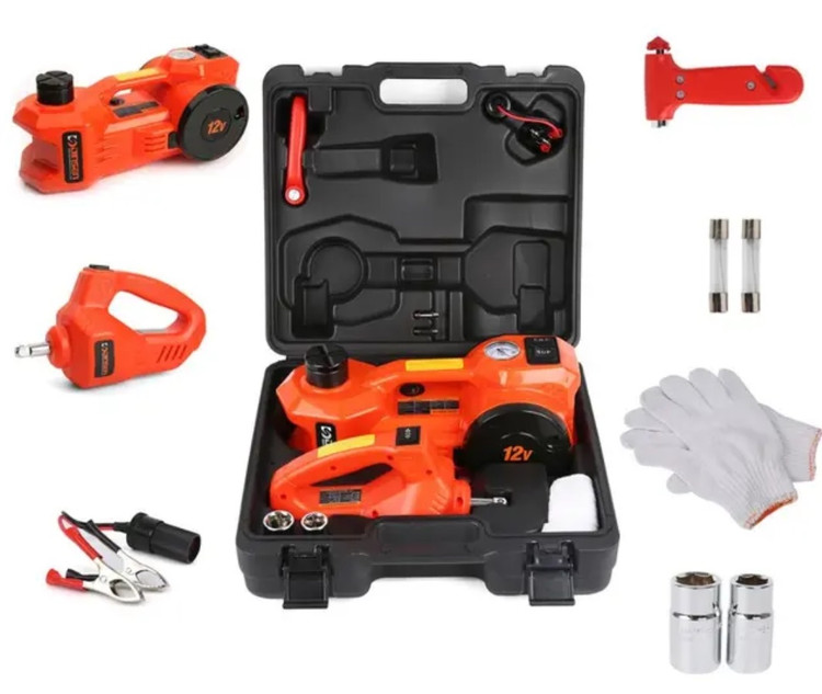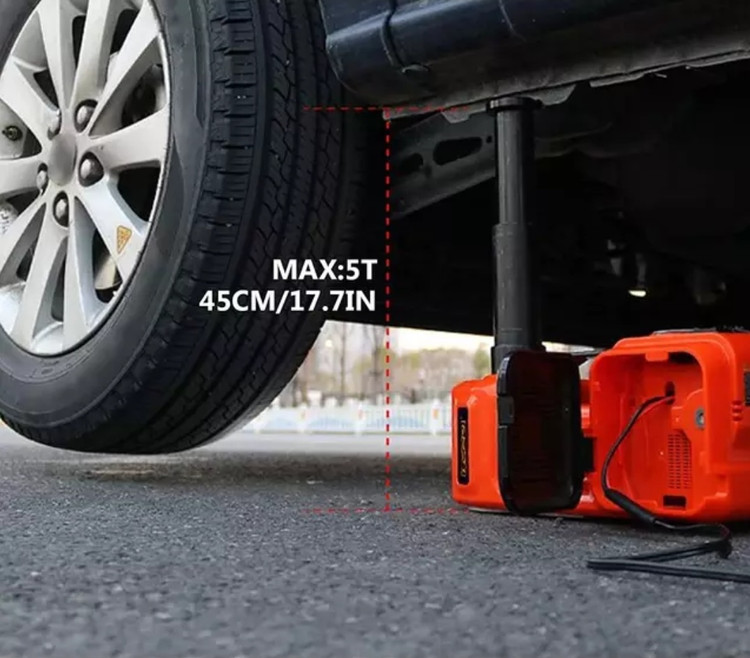 از جمله وسایلی که برای تعمیر و تعویض تایر خودرو مورد نیاز است، جک می باشد. از این وسیله برای کارهای مختلفی مانند تعمیر در تعمیر گاه ها و تعویض تایر استفاده می شود. جک ها دارای انواع مختلفی هستند؛ تا بتوان در موقعیت های مختلف از آن ها برای حل مشکل استفاده کرد. با استفاده از جک تعویض و یا تعمیر تایر ماشین کار سختی نیست. این وسیله وظیفه بلند کردن ماشین را بر عهده دارد. با این تفاسیر باید وزن بسیار زیادی را تحمل کند. پک آپاراتی که در این مقاله می خواهیم به شما معرفی کنیم، دارای یک کمپرسور می باشد. در یک سمت این کمپرسور یک جک از انواع هیدرولیکی قرار دارد. جک های هیدرولیکی از تعدادی پمپ تشکیل شده اند که به وسیله ی نیروی وارده فیزیکی، آن هم در کمترین مقدار فشار، کار بلند کردن خودرو را انجام می دهند. جکی که در این پک تعبیه شده است نیز در زمانی کوتاه، می تواند بخش مورد نظر خودرو را از زمین بلند کند و شما با خیال راحت به تعویض چرخ خودروی خود بپردازید. توان این جک 150 وات و ولتاژ ورودی آن 12 ولت و حداکثر جریان 13 آمپر می باشد. این وسیله می تواند وزنی معادل 5 تن را بلند کند، در نتیجه انتخابی قابل قبول برای خودروهای سواری است. این وسیله ماشین را تا ارتفاع 15 الی 45 سانتی متری می تواند؛ بلند کند.