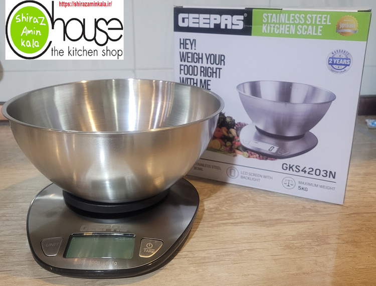ترازوی آشپزخانه استیل جی پاس مدل GKS4203N نوعی دیگر از ترازوهای آشپزخانه کاسه ایی استیل شرکت جی پاس است. باید ترازوهای کاسه دار آشپزخانه ای را بهترین نوع ترازوی آشپزخانه ای نامید. چراکه طراحی کاسه برای آنها، ارگونومیک ترین نوع طراحی برای وزن کردن اقلام مصرفی درون آشپزخانه هاست. عموما خانم های خانه دار علاقه دارند تا مواد مصرفی خود را دورن ظرف های گود و پیاله ای بریزند؛ و کاسه دار بودن ترازوهای آشپزخانه ای، این عادت تثبیت شده در زنان را برای وزن کردن نیز در نظر گرفته است. ترازوی آشپزخانه استیل جی پاس مدل GKS4203N از استیل ساخته شده است و رنگ نقره ای براق و صیقلی اش حکایت از همین دارد. هم بدنه و هم کاسه از استیل اند. کاسه را می توان از بدنه جدا کرد و بدون آن هم از ترازو استفاده کرد. باید به خاطر داشت که کاسه این ترازو می تواند در وزن کردن آب یا شیر که عموما برای طبخ غذاهای مختلف به کار می رود، بسیار کارآمد باشد.این ترازوی آشپزخانه کمری بسیار کوچک است و وزنش از نیم کیلوگرم تجاوز نمی کند و ابعادش برابر با 22×22×10 سانتیمتر است. این ترازوی دارای نمایشگر LCD است و وضوح کافی دارد و اعداد را به درشتی نمایش می دهد. جی پاس مدل GKS4203N نیازی به تنظیم کردن یا کالیبره ندارد. این کار به صورت خودکار و پس از روشن شدن ترازو انجام می شود. قابلیت جالب توجه این ترازوی آشپزخانه ای داشتن قابلیت توزین در دو واحد وزنی اونس و گرم است. میزان حداکثری توزین در این مدل 5 کیلوگرم است و حساسیت در این مقدار 1 گرم. مقداری متناسب با کارایی یک ترازوی آشپزخانه ای. تغذیه جی پاس مدل GKS4203N از طریق دو باطری قلمی AAA تامین می شود و به این ترتیب هزینه مصرف برق نخواهد داشت. از مجموع توضیحاتی که آورده شد، و در قیاس با قیمتی که بر روی این محصول گذاشته شده، ترازوی آشپزخانه استیل جی پاس مدل GKS4203N ترازوی با کیفیت و با صرفه اقتصادی بالا قلمداد می شود.