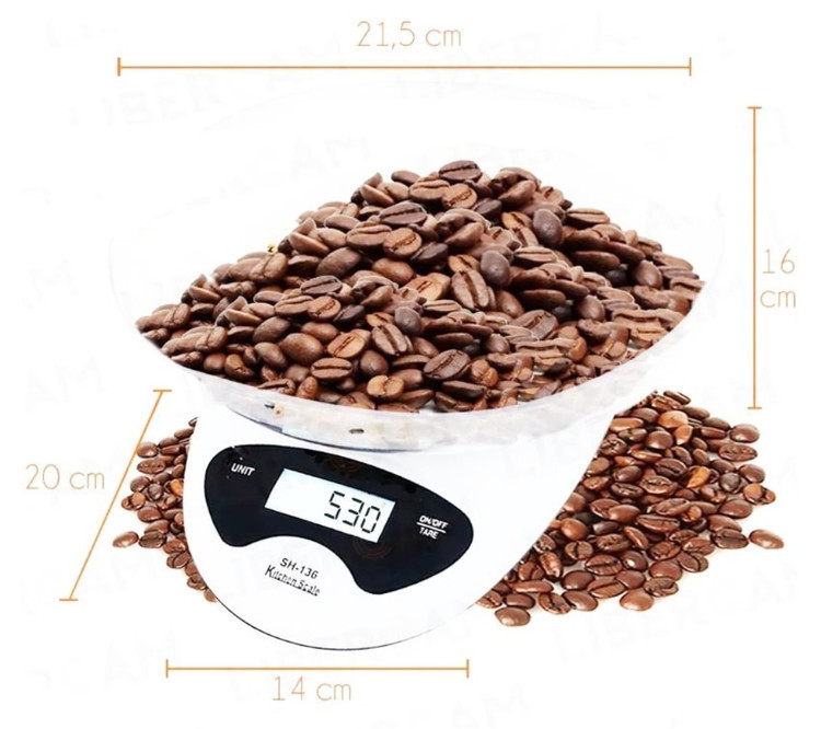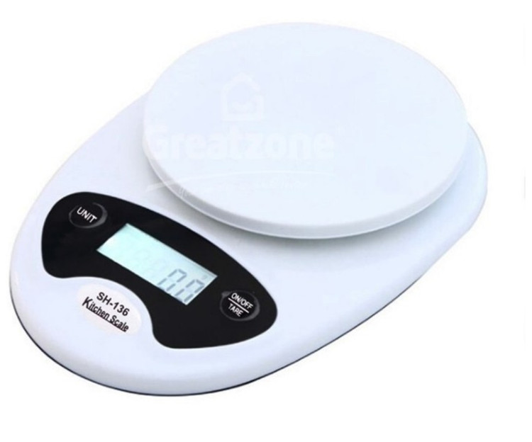 ترازوی دیجیتال 7 کیلوگرمی با ابعاد 16*14*20 سانتی متر و وزن 200 گرم، دارای صفحه LCD با دقت اندازه گیری 1 گرم، حداکثر میزان اندازه گیری 7000 گرم با 4 واحد اندازه گیری گرم، پوند، اونس و TL می باشد. عملکرد آن توسط 2 عدد باتری نیم قلمی بوده و دارای خاموشی خودکار در زمان عدم کار با ترازو در مدت زمان یک دقیقه می باشد. ترازوی دیجیتال SH-136 دارای طراحی جدید و بسیار شیک است که با کاسه ای مندرج با ظرفیت بالا ( 700 میلی لیتر ) می توان وزن انواع وسیله از جمله مایعات را اندازه گیری کرد.