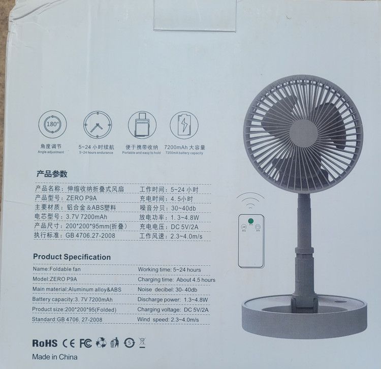پنکه شارژی تاشو همراه با ریموت کنترل مدل ZERO P9A یک وسیله کامل و کاربردی است .باتری 7200 میلی آمپر پنکه کمک کی کند تا با یک شارژ کامل، بین 5 تا 24 ساعت راخت و بدون دغدغه از پنکه استفاده نمود. ریموت کنترل موجود در جعبه هم امکان کنترل راحت پنکه را فراهم کرده است و این یعنی خداحافظی با گرما و بیحوصلگی! در حالت های مختلف می توان از پنکه استفاده نمود به صورتی که تا ارتفاع 100 سانتی متر قابل تنظیم می باشد. قابل حمل جهت مسافرت و پکنیک می باشد.