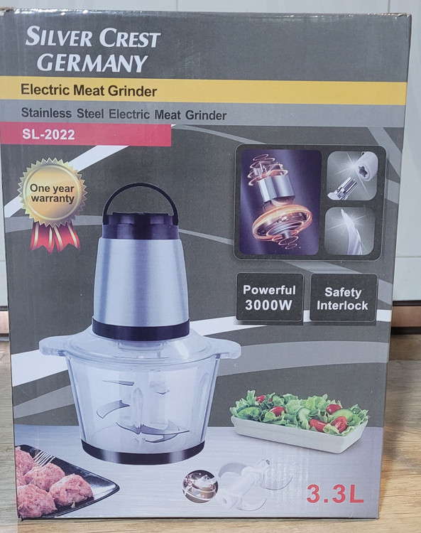 خردکن سیلور کرست 3.3 لیتر 3000 وات مدل SL-2022 یکی از قدرتمند ترین خردکن های حال حاضر دنیا می باشد. خردکن سیلور کرست امکان خرد کردن سبزیجات،گوشت ، مرغ ، پیاز، سیب زمینی .... را به راحتی و در مدت زمان بسیار کوتاه برای مصرف کننده فراهم میکند. با داشتن خرد کن ( SILVER CREST SL-2022) دیگر روش سنتی خرد کردن با چاقو را کنار بگذارید و با خیال راحت و در سریع ترین زمان مواد مورد نیاز خود را خرد کنید. خرد کن تک کاره (SILVER CREST) از بهترین مواد اولیه و با بهترین کیفیت ساخته شده است که یک عمر با خیال راحت با آن کار خواهید کرد. این دستگاه خرد کن دارای دکمه فشاری برای کار کردن دستگاه می باشد و مجهز به سیستم ترموستات می باشد. خردکن سیلور کرست دارای دو دور سرعتی کند و تند می باشد. شما عزیزان با توبه به نوع نیازتون به راحتی نسبت به تغییر حالات سرعتی می توانید اقدام نمایید. جنس بدنه ی خرد کن از پیرکس شیشه ای می باشد و تمیز کردن آن راحت است و در مرور زمان زرد نخواهد شد.جنس درپوش خردکن از پلاستیک مقاوم می باشد.ظرفیت ظرف این دستگاه خردکن 3.3 لیتر می باشد که اندازه استانداردی برای مصرف یک خانواده می باشد. جنس ظرف این دستگاه از پیرکس شیشه ای مقاوم است و در برابر ضربات فیزیکی احتمالی کاملا مقاوم می باشد و همچنین مواد در حال خرد شدن نیز در این پیرکس کاملا قابل مشاهده می باشد. این دستگاه دارای قطع کن حرارتی می باشد تا چنانچه موتور دستگاه بیش از حد داغ شود به طور اتوماتیک دستگاه خاموش شود. همچنین خردکن سیلور کرست دارای قفل ایمنی می باشد و تا زمانی که دستگاه روشن است،اجازه باز کردن ظرف را از دستگاه نداشته باشید زیرا بسیار خطرناک است. این دستگاه دارای دو تیغه ۴ پره بسیار تیز می باشد و جنس تیغه های خرد کن حرفه ای سیلور کرست از استیل ضد زنگ می باشد که درمقابل رطوبت مقاوم است و طول عمر بالایی دارد. تیغه های دستگاه همزمان با هم می چرخند و به آسانی مواد را خرد می کنند. بعد از اتمام کار با دستگاه می توانید تیغه های آن را در بیاورید و آن ها را شست و شو دهید. علاوه بر کارایی بالا این محصول از یک ظاهر بی نظیر نیز برخوردار است.