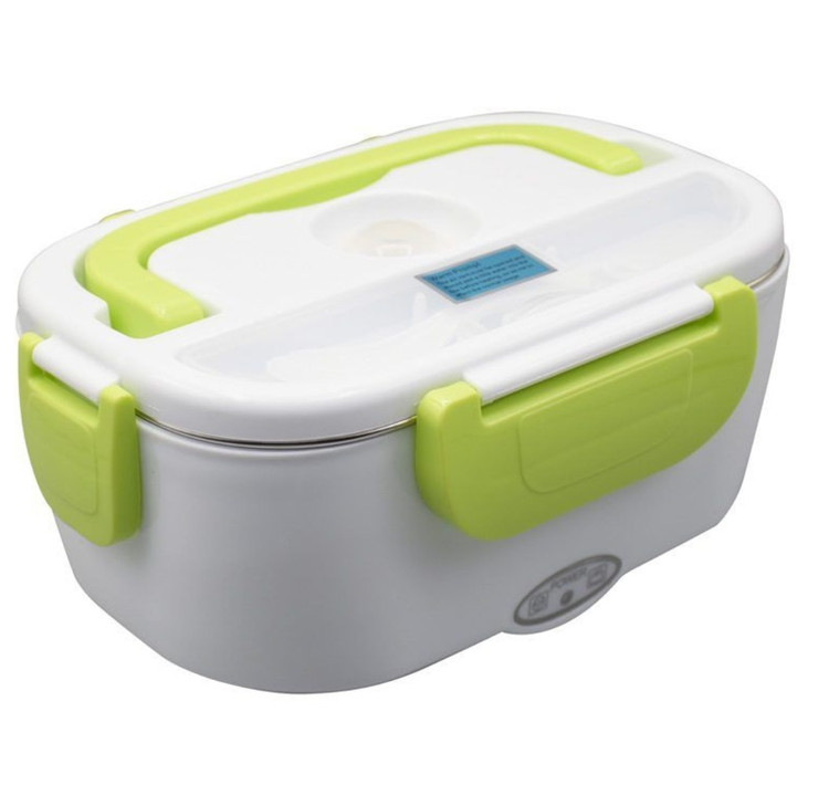 ظرف غذای برقی لانچ باکس محصولی بسیار کاربردی و جالب است که در زمانی کوتاه غذا را گرم می کند بدون آنکه بسوزد یا بوی بد بگیرد. کاربرد اصلی این ظرف غذای حرارتی برای کارمندان یا کسانی است که فرصت کافی برای ماندن در آشپزخانه را ندارند. ظرف خورشت یا سالاد، قاشق پلاستیکی و کابل برق از متعلقات همراه این محصول هستند. جنس بدنه آن از پلاستیک درجه یک می باشد وجنس ظرف داخلی از استیل درجه یک که با خیال راحت می توانید از آن استفاده کنید. و فاقد BPA میباشد ابعاد ظرف 22x15x11 میلی متر و گنجایش آن 1.5L است که برای غذای یک نفر مناسب است. درون بدنه اصلی امکان قرار دادن ظرف خورشت نیز قرار داده شده است. ولتاژ دستگاه 110~240V با فرکانس 50Hz و توان 40W می باشد. این محصول مناسب استفاده خانواده ها، ادارات، شرکت ها و ... می باشد. درب ظرف از 4 طرف به صورت محکم روی بدنه قفل شده و دستگیره روی درب به راحتی امکان حمل ظرف را فراهم میکند.