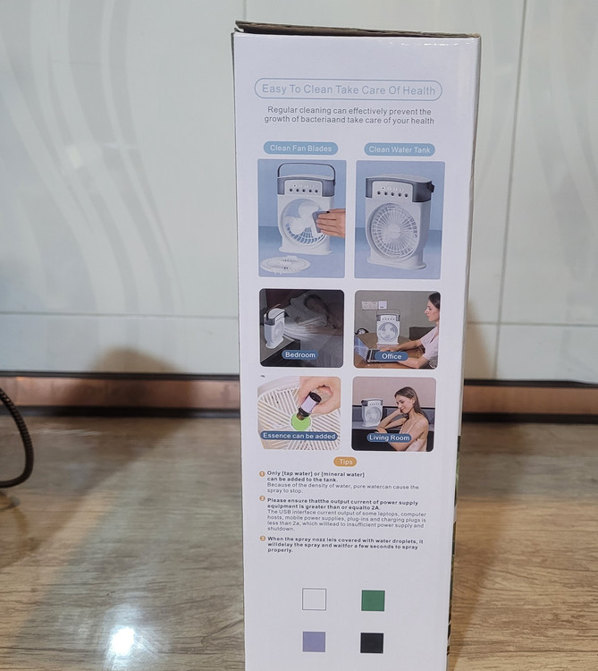 پنکه رومیزی مه پاش مدل ORB با سه سرعت و توان 10 وات دارای پنج خروجی اسپری آب می باشد که از مخزن 600 میلی لیتری بالای پنکه تغذیه می کنند. قدرت پنکه و امکان تغییر زاویه فن از دیگر ویژگی های این پنکه می باشد.