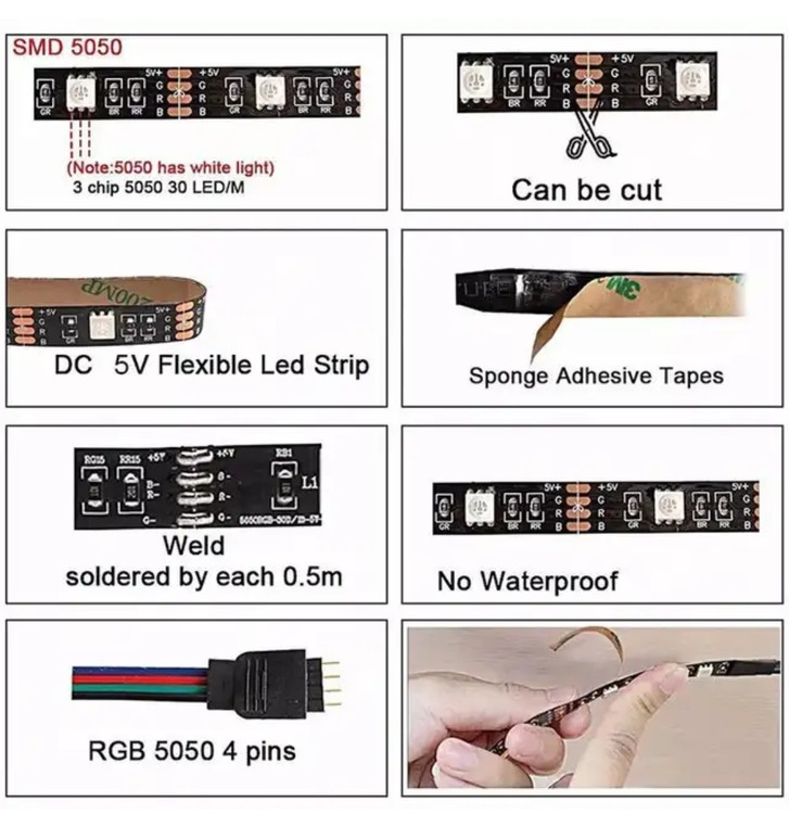 ریسه استریپ لایت بلوتوثی پنج متری XTRIKE ME حساس به صدا مدل HT-5050 B5 با پشتیبانی 16 میلیون رنگ مناسب انواع تزیئنات مورد نظر می باشد. این محصول XTRIKE ME با کیفیت بالا قابلیت انعطاف پذیری خوبی را دارا می باشد ضد آب و دارای کد محافظت IP65 می باشد که در برابر قطرات آب مقاومت بالایی را از نشان میدهد. این استریپ لایت را می توان به حالت صدا متصل کرد که با صحبت کردن و تشخیص قوی صدا رنگ و حالت نور عوض شود. پکیج استریپ لایت شامل: یک عدد نوار LED RGB (5 متر)، یک عدد کنترلر RGB می باشد.