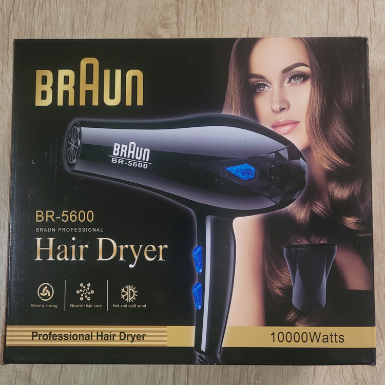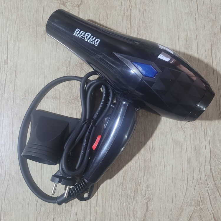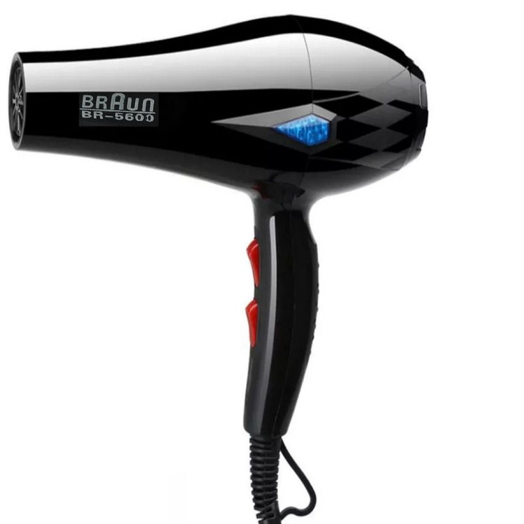 سشوار براون BR-5600FH با قدرت 8000 وات که برای استفاده در خانه، سالن و آرایشگاه به کار گرفته می شود کیفیت وکارایی فوقالعاده دارد موتور AC (سنگین) این سشوار قدرت حالت دهی عالی دارد وپرتاب باد نسبت به گرمایی که برای استفاده میدهد بسیار مناسب بوده وکار را برای شخص آسان میکند سشوار براون دارای دو حالت پرتاب باد و دو حالت گرما به صورت کم وزیاد دارد. المنت دستگاه از سرامیک بوده وقابل جدا شدن میباشد و طراحی بسیار خوش دست دارد و یک متمرکز کننده به همراه سشوار در جعبه است