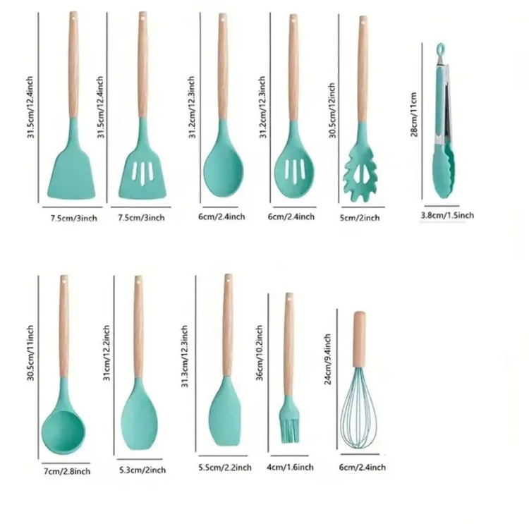 سرویس کفگیر و ملاقه سیلیکونی 12 پارچه دسته چوبی بامبو لاوسانگ مدل LS-81130