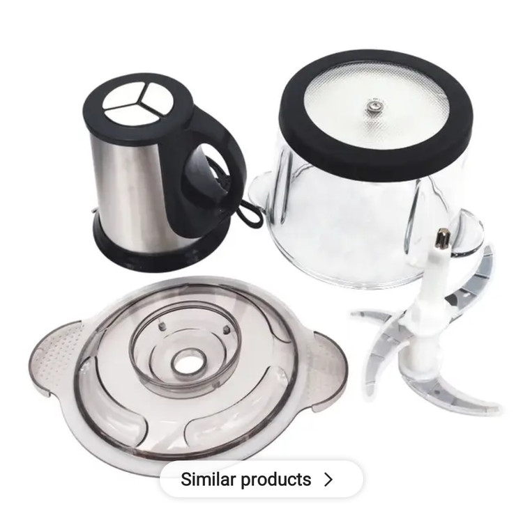 همراه خردکن علاوه بر تیغه 5 پره، کارد پلاستیکی و لاستیک ضد لغزش برای زیر کاسه، تیغه همزن و یک اهرم جهت استفاده دستی در مواقع قطع برق یا استفاده از همزن می باشد.