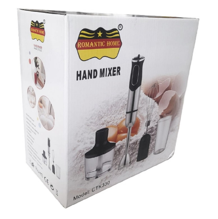 گوشت کوب برقی رومانتیک هوم مدل CTK330 یک محصول 4 کاره پر کاربرد هست. هم میتوان از آن به عنوان گوشت کوب استفاده کرد و هم میتوان با آن از مزیت خردکن استفاده کرد. و هم میتوان به عنوان یک همزن برای تهیه شیرینی و تهیه دسر استفاده کرد. قدرت واقعی این محصول 400 وات هست که جنس هسته موتور آن از مس هست. یکی از ویژگیهای موتور این دستگاه، استفاده از موتور هسته مس هست که باعث میشود عمر کارکرد دستگاه اففزایش پیدا کند. قطعات این همزن رومانتیک هوم مدل CTK330 به راحتی قابل جدا شدن هستند و شستشوی آن بسیار آسان هست. تعداد دور این محصول به صورت دو دور هست که بستگی به نوع کاردکرد آن قابل تغییر است. جنس تیغه این محصول بسیار تیز و برنده هست و از جنس استیل ضد زنگ ساخته شده. حجم کاسه خردکن این برند 860 میلی لیتری و حجم لیوان آن 600 میلی لیتر هست.