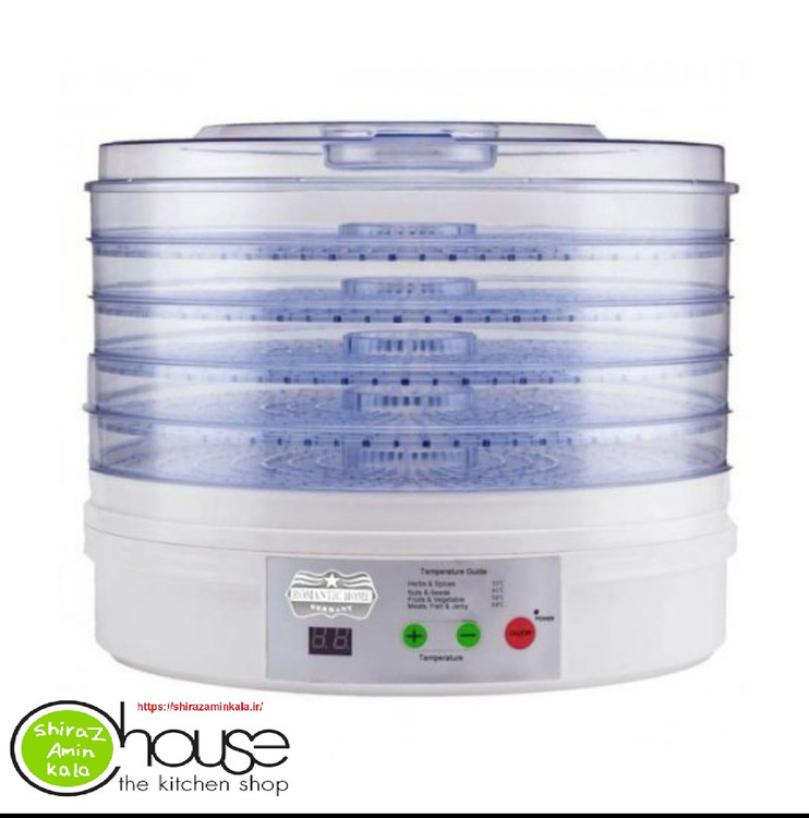 میوههای خشک از تنقلات خوشمزه و سالماند که میتوانند جایگزین بسیار خوبی برای تنقلات ناسالم باشند. میوه خشک کن رمانتیک هوم مدل DFF15 دستگاهی کارآمد برای دوستداران میوههای خشک و برگههای خوشمزهی میوه است. این محصول علاوهبر میوه، قابلیت خشککردن سبزیجات و گلها را دارد. با استفاده از این دستگاه میتوانید برگههای میوه را با اطمینان از سلامت و بهداشت کامل آنها در محیط خانهی خود تهیه کنید. بهترین قطر میوه برای خشککردن این دستگاه پنج میلیمتر است. میوه خشک کن رمانتیک هوم مدل DFF15 با برخورداری از پنج طبقهی مختلف اجازهی خشککردن چند نوع میوه را در یک زمان به کاربر میدهد. این دستگاه از موتور 245 وات برخوردار است . پنج سینی بزرگ دستگاه روی هم قرار میگیرند و امکان چرخش 360 درجه و قابلیت جداسازی از بدنه را دارند که نظافت آنها را آسانتر کرده است. این سینیها مشبک هستند تا گرما بهخوبی میان آنها منتقل شود. از طریق دکمههای تنظیمات دستگاه میتوانید دمای کار و تایمر آن را تنظیم کنید.