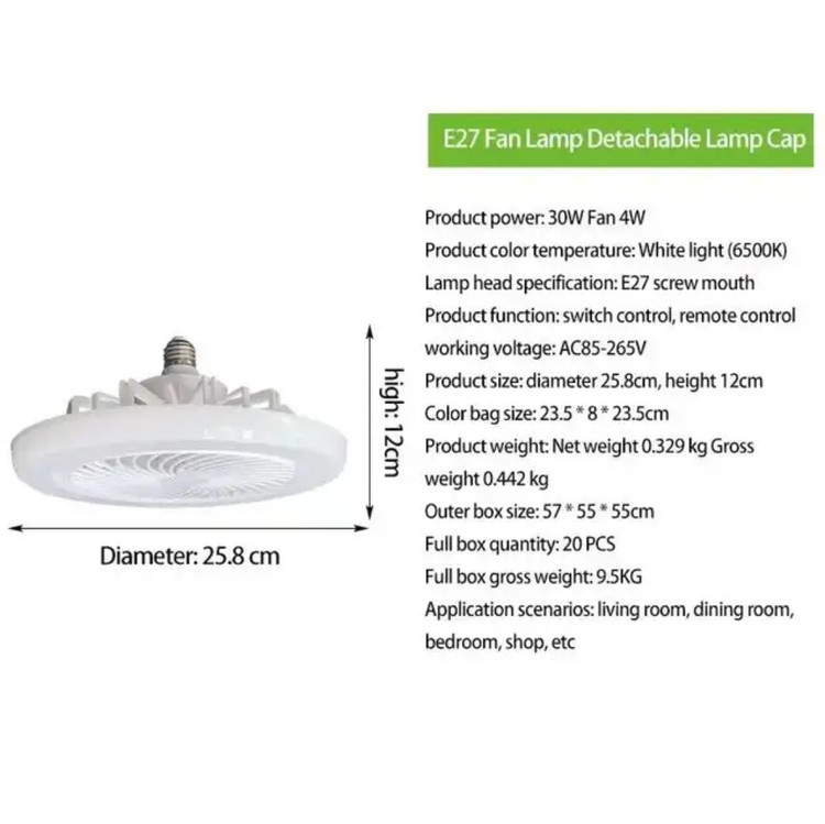 از ویژگی این چراغ پنکه سقفی محصور دارای موتور بی صدا مسی، باد شدید، سرعت دویدن سریع، صدای کم است تا یک محیط خواب آرام و راحت را برای شما ایجاد کند. این چراغ فن دارای طراحی نصب ساده و قابل درک است، هیچ مهارت حرفه ای لازم نیست، برای نصب سریع کافی است پنکه سقفی LED را در هر سوکت لامپ E27/E26 پیچ کنید، می توانید به راحتی نصب را کامل کنید. ، و بلافاصله از سورپرایز مضاعف خنک کننده و نورپردازی لذت ببرید.