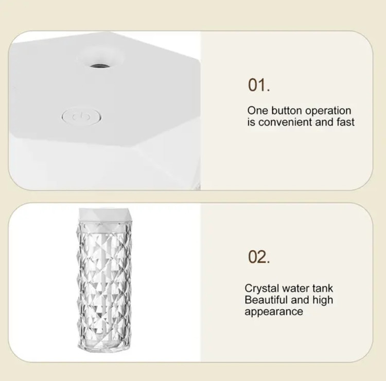 این دستگاه بخور و رطوبتساز یک اثر هنری منحصربهفرد است! طراحی ویژه آن بهگونهای است که میتواند حهت چراغ خواب نیز استفاده نمود. این محصول از فناوری بیصدا استفاده میکند تا با ایجاد یک مه نرم دلپذیر محیطی آرام را برای شما فراهم کند. این دستگاه رطوبتساز را در محیطهایی مانند اتاق خواب، اتاق مطالعه، کافهها و رستورانها و... میتوان استفاده کرد. در آب داخل دستگاه می شود اسانس اضافه نمود که میتواند آب و اسانس عطر را در غبار ریز آب پراکنده و هوا را مرطوب و رایحهی دلپذیری را در محیط پخش کند. این دستگاه دارای نوری ملایم و بینظیر است که بهراحتی از طریق پنل کنار دستگاه قابل تنظیم است و میتواند به ایجاد فضایی دلنشین و آرامشبخش کمک کند. محصول نامبرده دارای عملکرد خاموشکننده هوشمند است و میتواند در زمان اتمام آب درون مخزن، به طور خودکار خاموش شود و استفاده از آن را ایمنتر میکند.