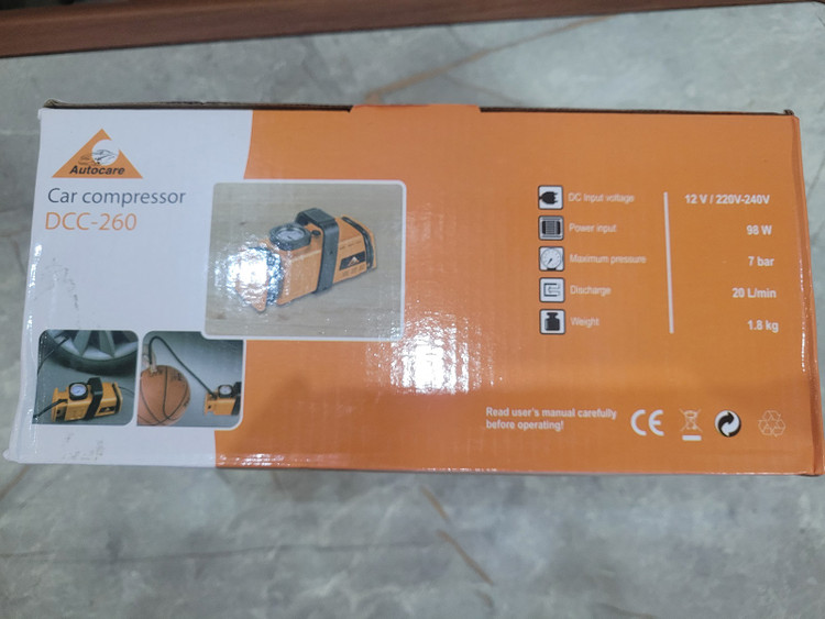 کمپرسور و پمپ باد دو کاره (فندکی و برق شهری) خودرو Auto care مدل DCC-260 جدیدترین محصولی می باشد که به بازار ارائه شده است. وزن این کمپرسور 1635 گرم بوده و برای استفاده در خودرو و همچنین مصارف خانگی مناسب است. ولتاژ ورودی آن 220 ولت از طریق برق شهر و 12 ولت از طریق فندکی خودرو است. این محصول قادر به تولید فشار 200PSI می باشد. دبی هوای این محصول 20 لیتر بر دقیقه و مجهز به فشارسنج، دستگیره، شلنگ 80 سانتیمتری است. کمپرسور باد رونیکس قابلیت نمایش فشار هوا به واحدهای بار، پی اس آی و کیلو پاسکال را دارد؛ همچنین این دستگاه دارای نمایشگر عقربه ایی، 2 عدد نازل جهت اتصال به تجهیزات مختلف است. کابل برق این محصول 2 متر و کابل فندکی آن 3 متر است.