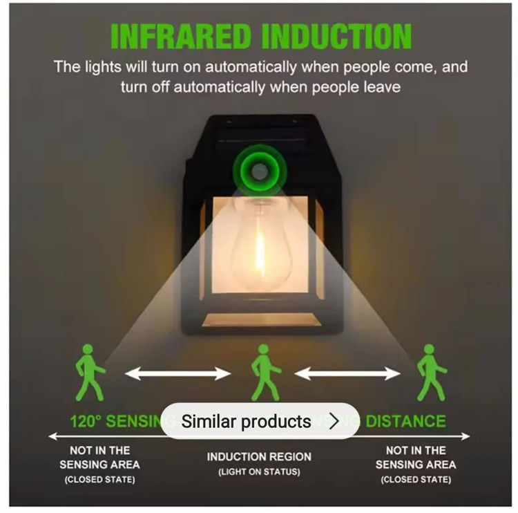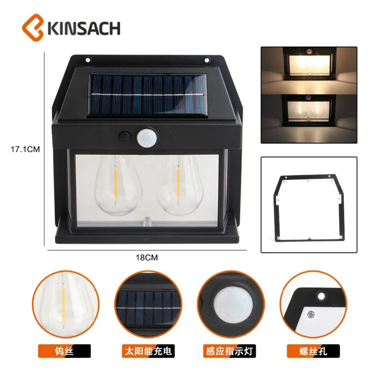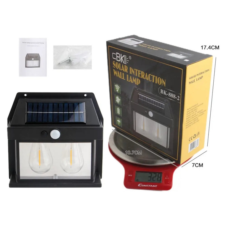 دارای ابعاد 17.6*17.3* 6 سانتی متر نور عالی برای باغ، حیاط، راهرو، ایوان، در خانه و محوطه های بیرونی در معرض نور خورشید مجهز به 2 لامپ LED پر نور رنگ نور خورشیدی دارای محل مخصوص پیچ کردن بر روی دیوار دارای دکمه خاموش و روشن دارای سنسور نور، یعنی با تاریک شدن هوا بدون نیاز به دکمه روشن می شود دارای سنسور حرکت، در صورت عدم حرکت روبروی لامپ، نور خاموش شده و در صورت حس حرکت بلافاصله روشن می شود طراحی حرکت PIR روشنایی روشن در تاریکی زمانی که حرکت فعال می شود ابعاد کوچک نصب آسان با پیچ های نصب شده دیواری عمر طولانی