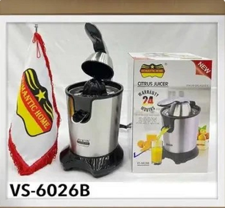 آب مرکبات گیری رومانتیک هوم مدل VS-6026B دارای قدرت و توان مصرفي اين آب مرکبات گيري 200 وات مي باشد. جنس بدنه از نوع استیل مقاوم بوده و در پایین دستگاه 4 عدد لرزه گیر محکم وجود دارد تا در هنگام استفاده از محصول، جلوگیری از حرکت کردن دستگاه کند. استوانه مخروطي متصل به اهرم از جنس استيل ضد زنگ مي باشد. با پايين نگه داشتن استوانه مخروطي شکل که به اهرم متصل مي باشد عمل عصاره گيري مرکبات انجام مي پذيرد.